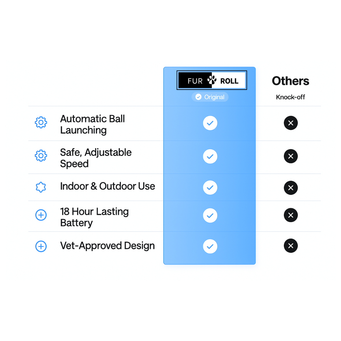 Crafted with vet-approved safety and ergonomic design, FurRoll™ isn’t just a toy, it’s a health-boosting playmate. Its adjustable launch speeds and indoor/outdoor versatility make it perfect for every breed and every space, from small apartments to wide-open yards.